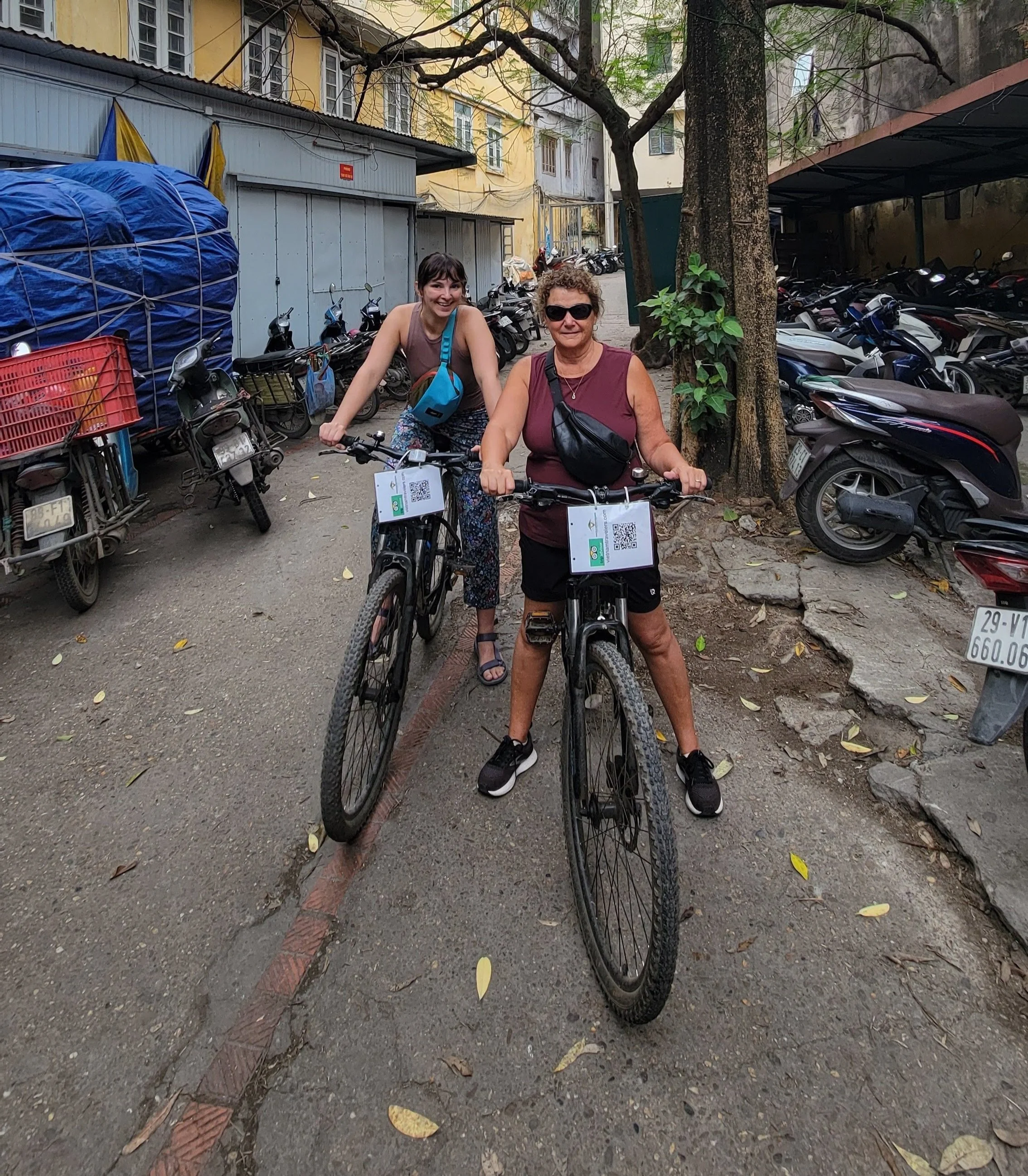 Meet Minh, our tour guide. He’s newly married, a new father of a four month old little girl, and he was great fun. We were his only customers for the morning so we had his undivided attention. Hana and I were both nervous about riding a bike in this crazy traffic. Minh’s mantra was “No Fear - just go for it”. He was an excellent companion and helped us to safely navigate everything. It wasn’t long before we had built our confidence and technique and were safely weaving in/out of the million scooters, cars, trucks, and busses. We had a great time and loved Minh’s fun sense of humor.