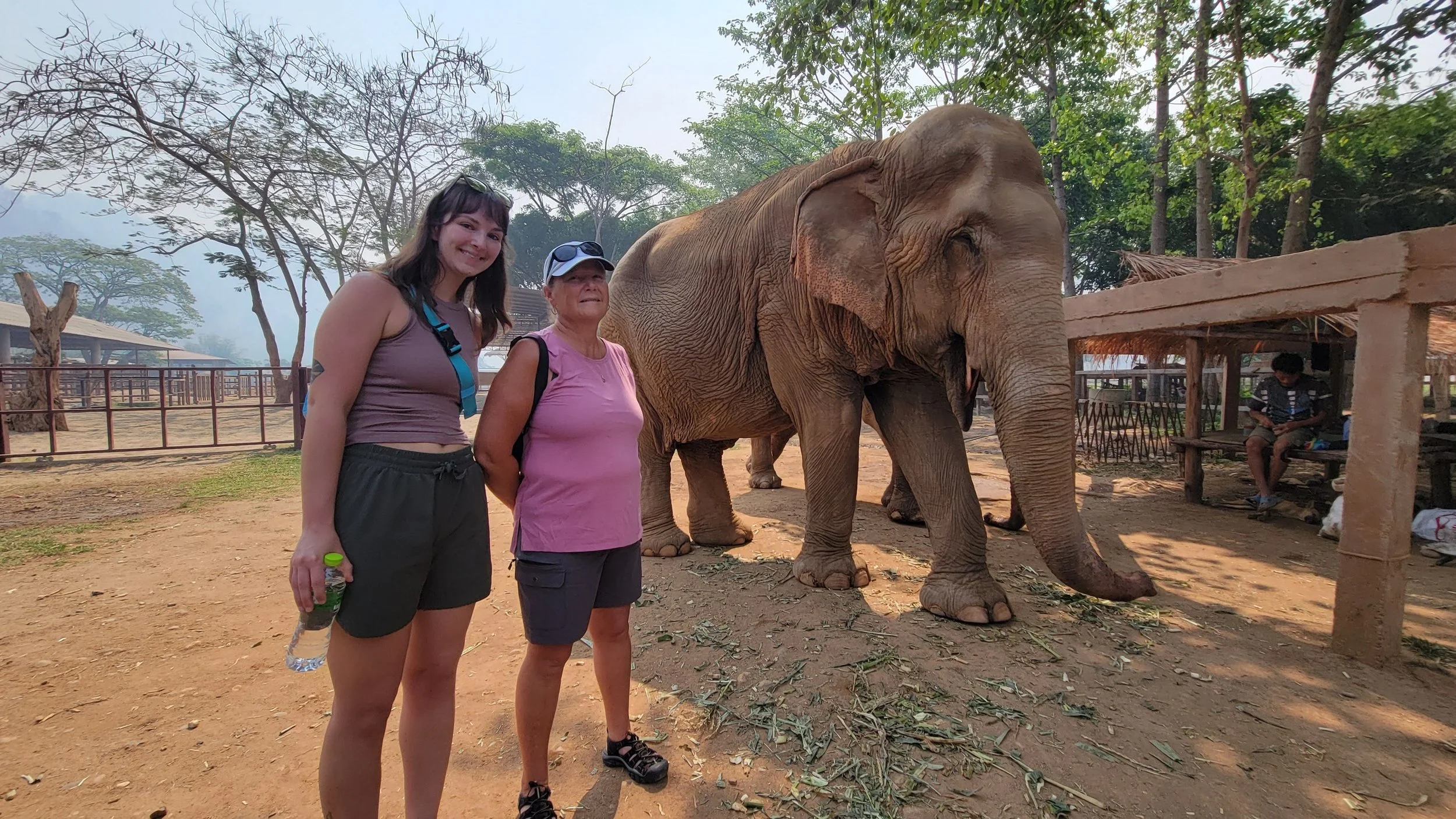Every elephant has a handler who is responsible to care and feed them. There are two in this area as one handler was on his day off. The elephant families stay separate but are very bonded to each other.