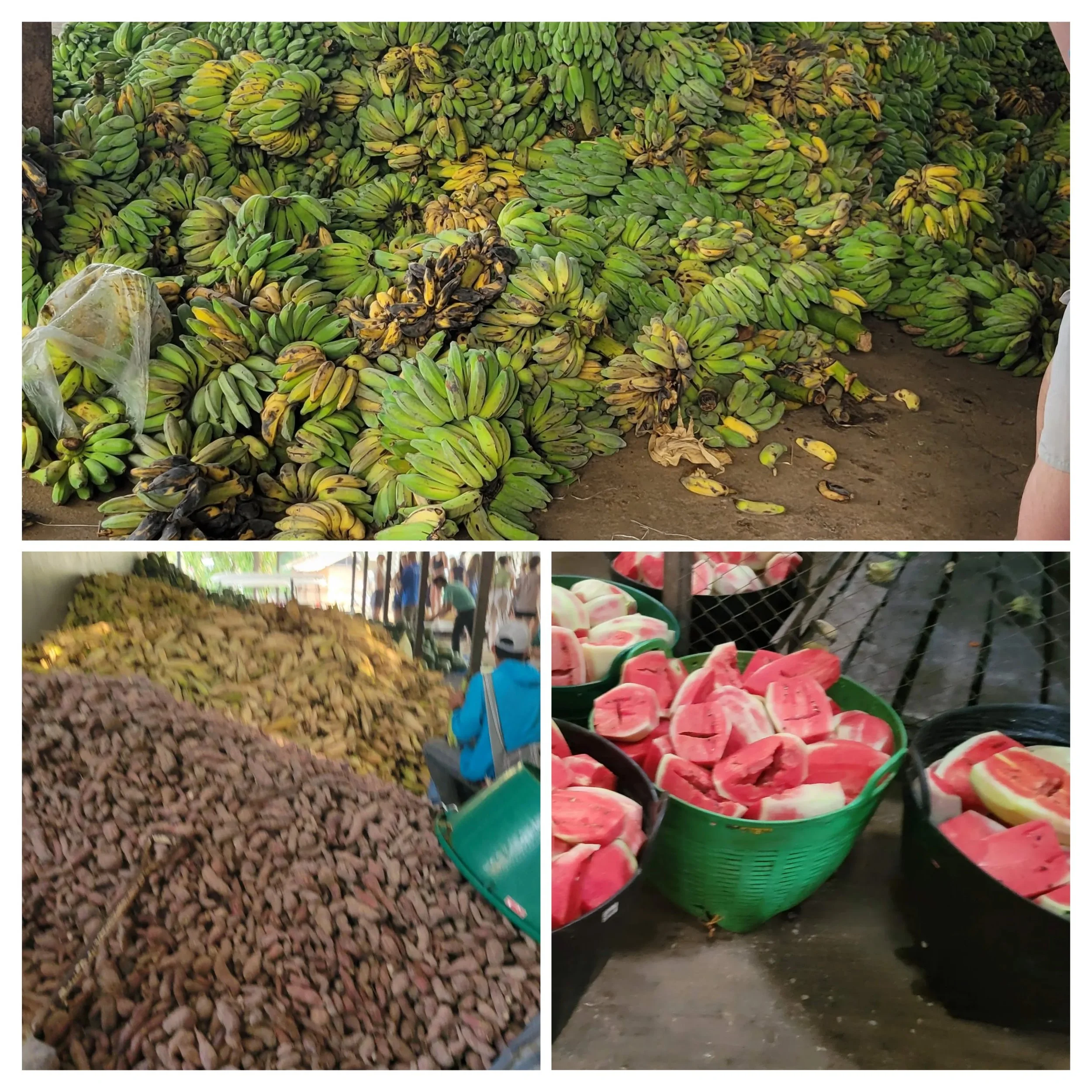 There are two favorites times of an elephants day - first is eating. While we were there, volunteers were off loading a huge truckload of watermelons. They eat a lot of fruit and corn stalks. The local farmers exchange fruit for elephant manure, helping both. For the older elephants, the watermelon is peeled as some have few or no teeth.