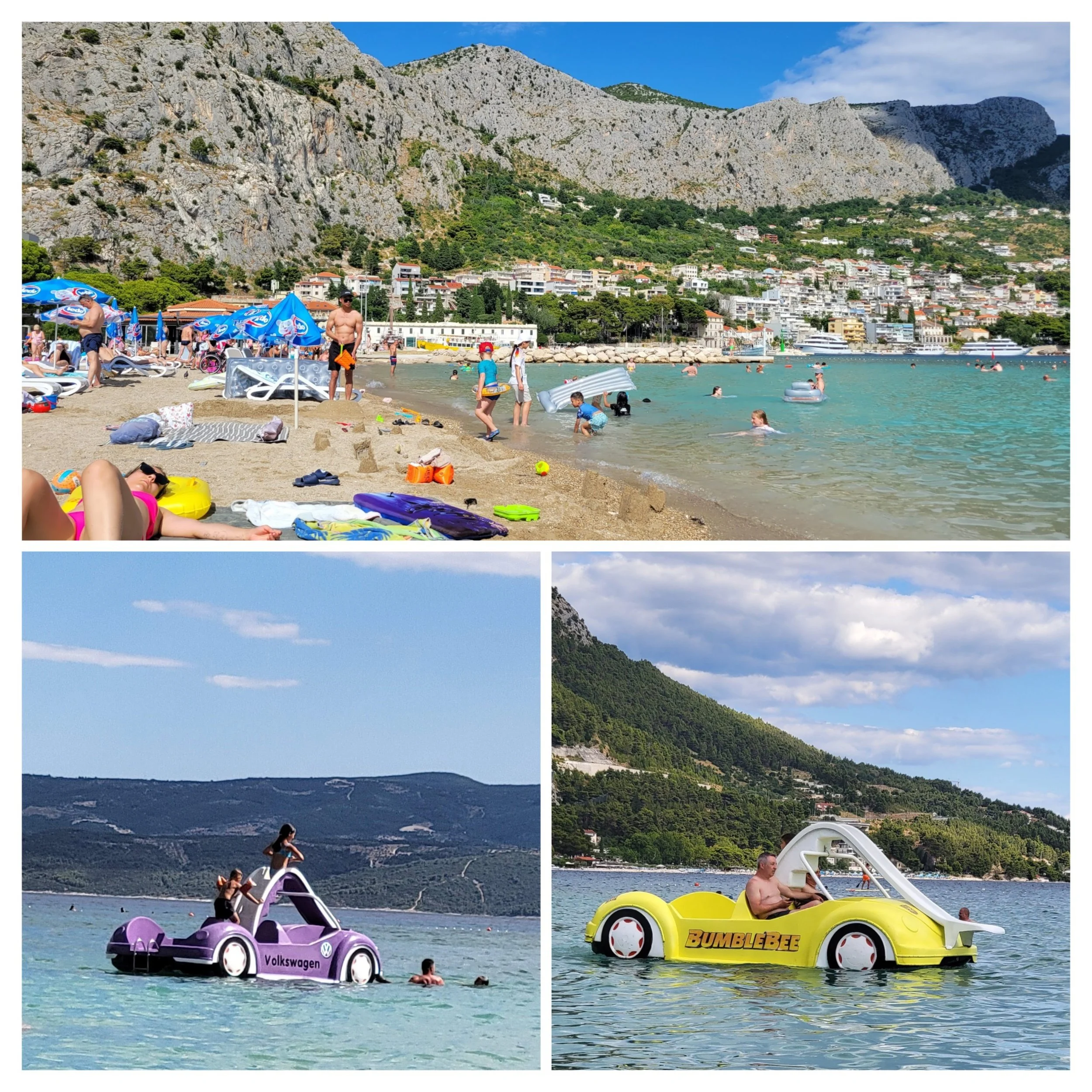 We took our towels and rented beach chairs and an umbrella and enjoyed the afternoon in the sun. There were kids and families playing everywhere. These paddle cars were quite the hit.