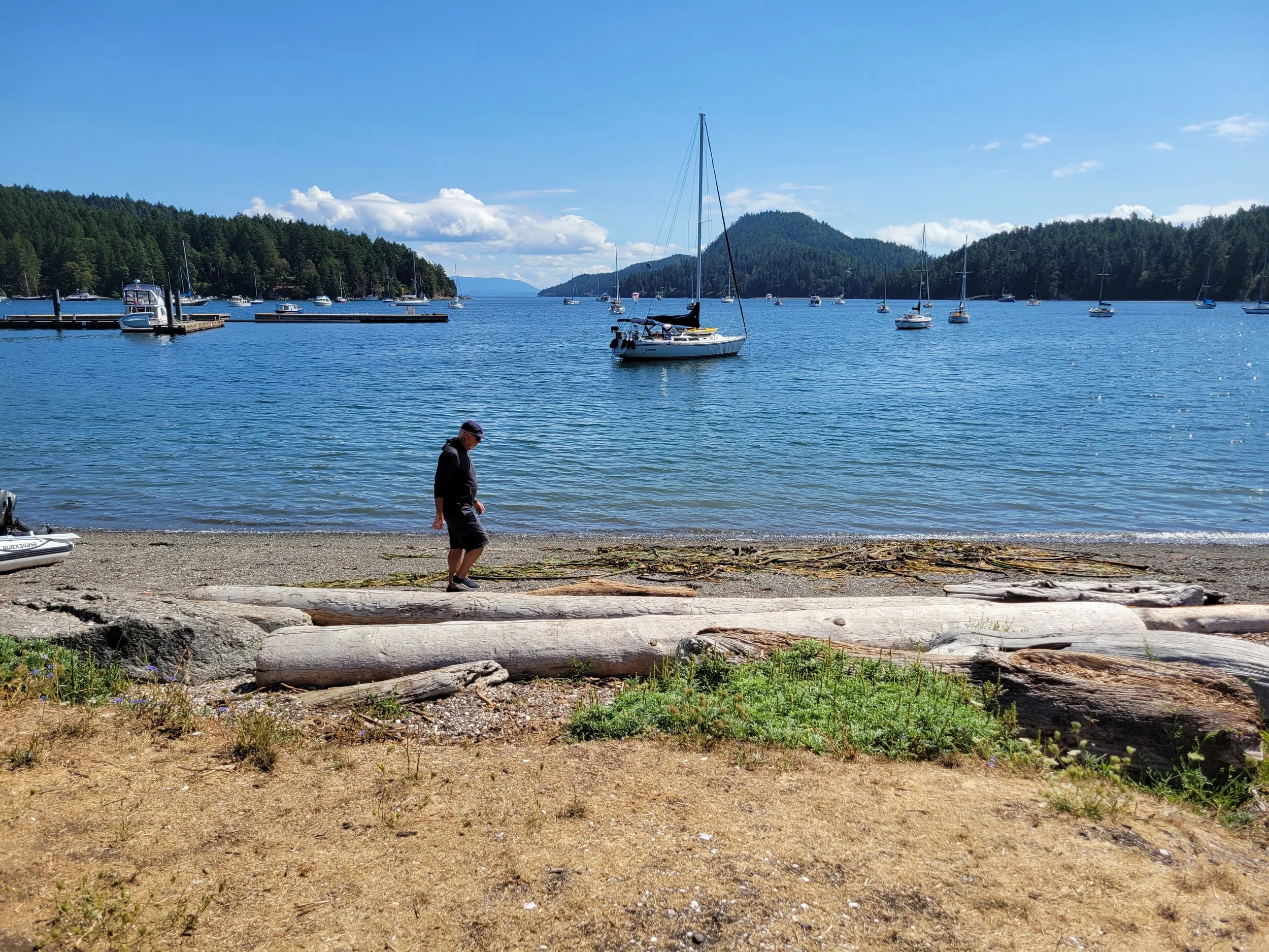 This is a long wide open bay with a great beach and plenty to do. We were on the dock but it was nice to see so much anchorage. The small town of North Pender is just a ten minute walk away with a well stocked grocery store, and of course, an amazing bakery.