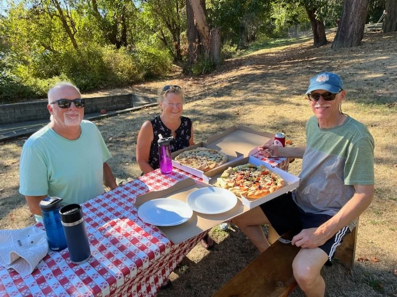 We arrived at Telegraph Harbor Marina in 20+ mph winds and were grateful we had reservations. Everyone was trying to find a safe place to land. It was crazy busy and the staff were so patient and got everyone in without incident, even on a minus tide. After we were settled, we found pleasure in the wind to cool us - it was so hot - 92 degrees in the main cabin with all the windows open.