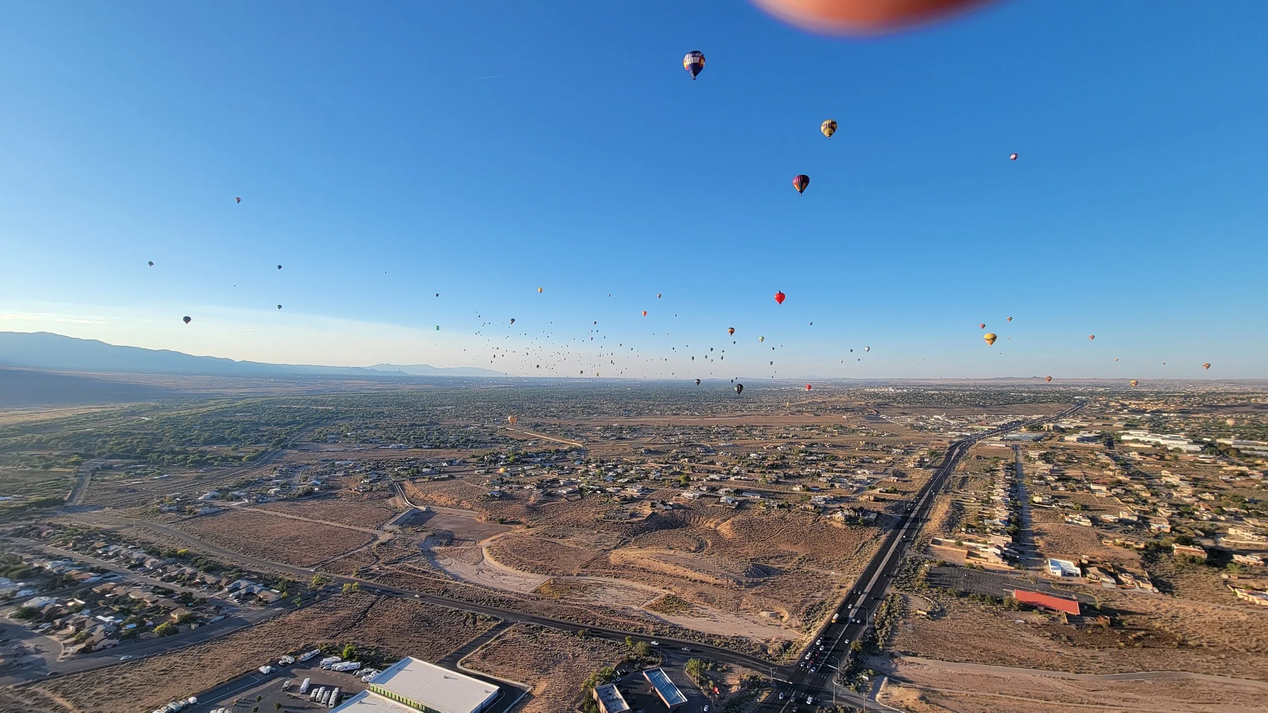 The launch is very well choreographed. All of the officials are in black and white striped shirts and are affectionaly called Zebras. You can’t launch until they tell you to, just like an air traffic controller. As you watch the video, you see us jumping. The basket needed to move forward several feet to get away from another balloon that was filling so we could launch safely. Once we got the ok from the Zebra, we were airborne…. flying. I still tear up and get chills just remembering. It was so magical and a dream come true.