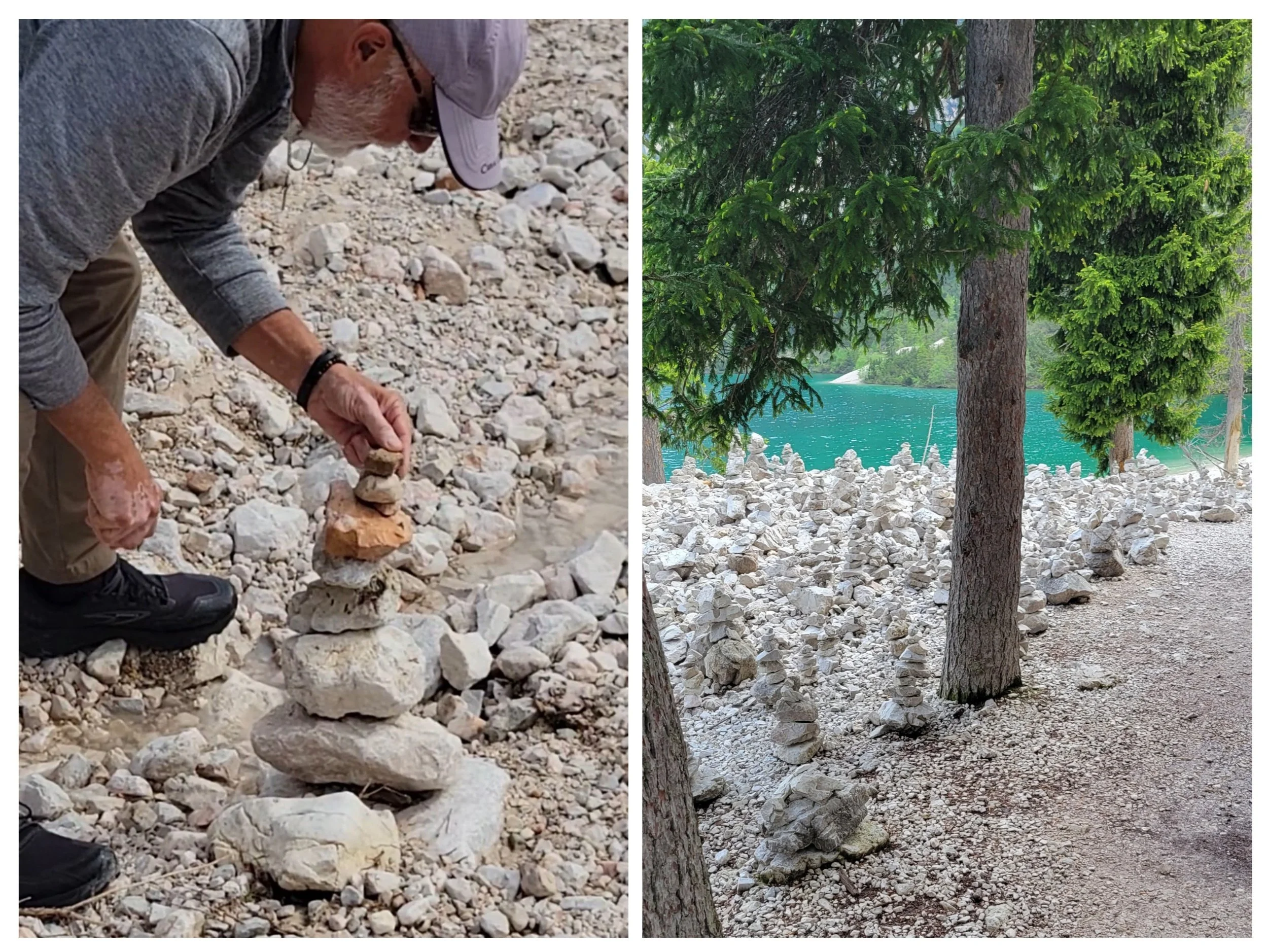 We came across two fields of cairns, hundreds of them, and they were so cool. So KF added one. It took him several tries, but he got it. I was impressed and loved the single orange rock to set it apart from the others. He has such talents 🥰.